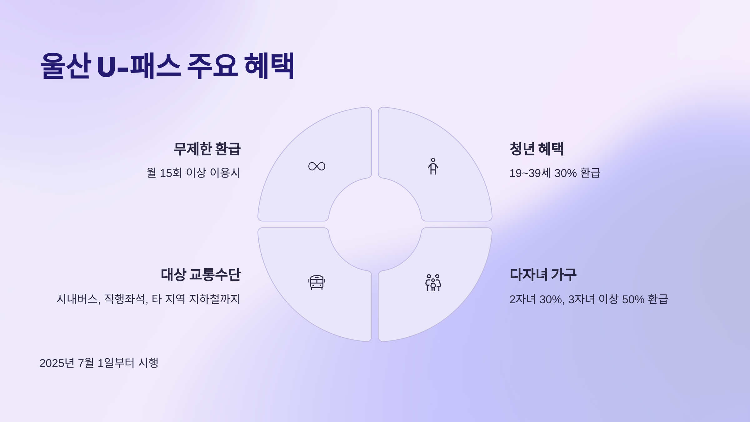- 환급 대상: 울산 시내버스, 직행좌석, 리무진, 지선·마을버스 및 타 지역 지하철